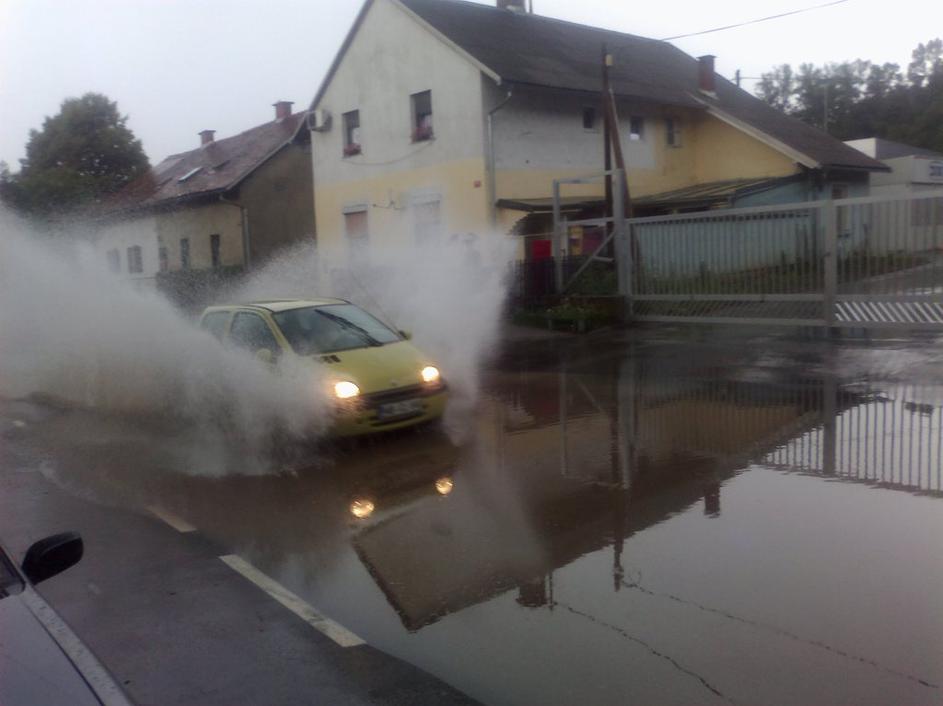 Podrta drevesa, voda na cesti