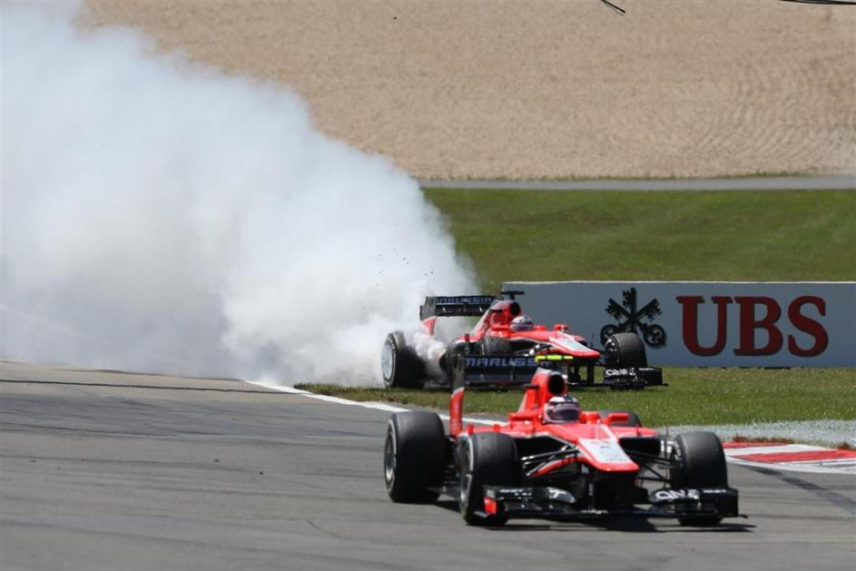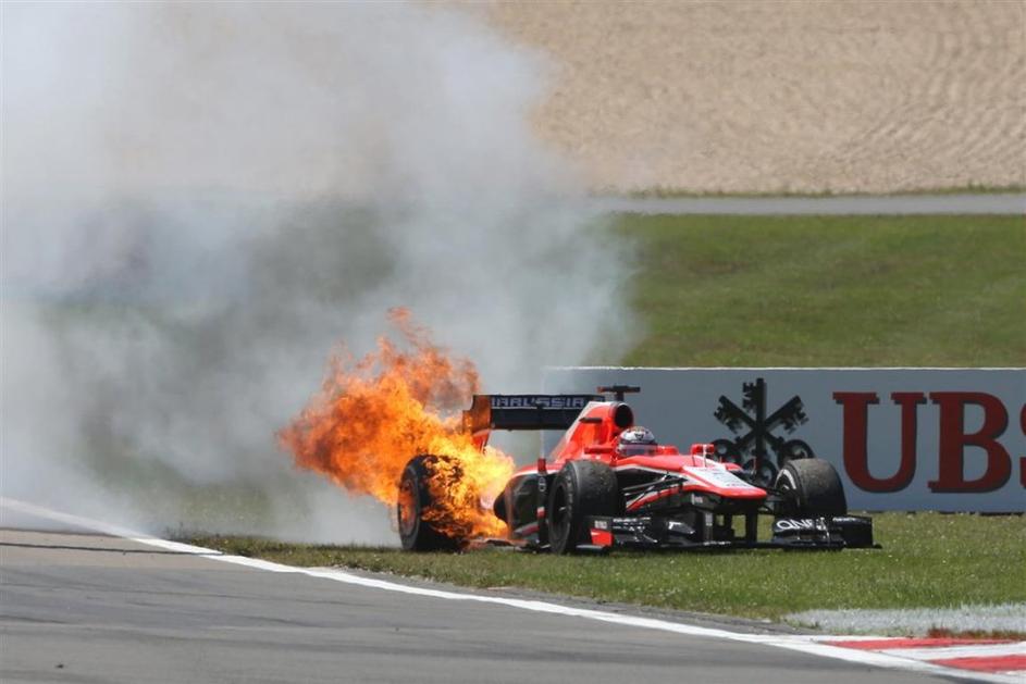 Marussia Julesa Bianchija je zagorela in se brez dirkača popeljala po stezi.