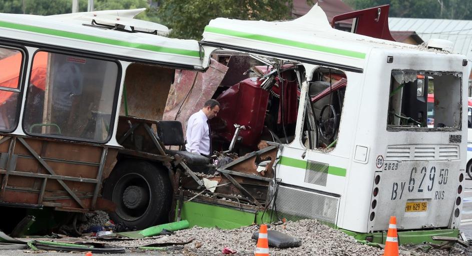 nesreča, Moskva, avtobus, tovornjak