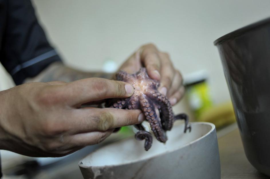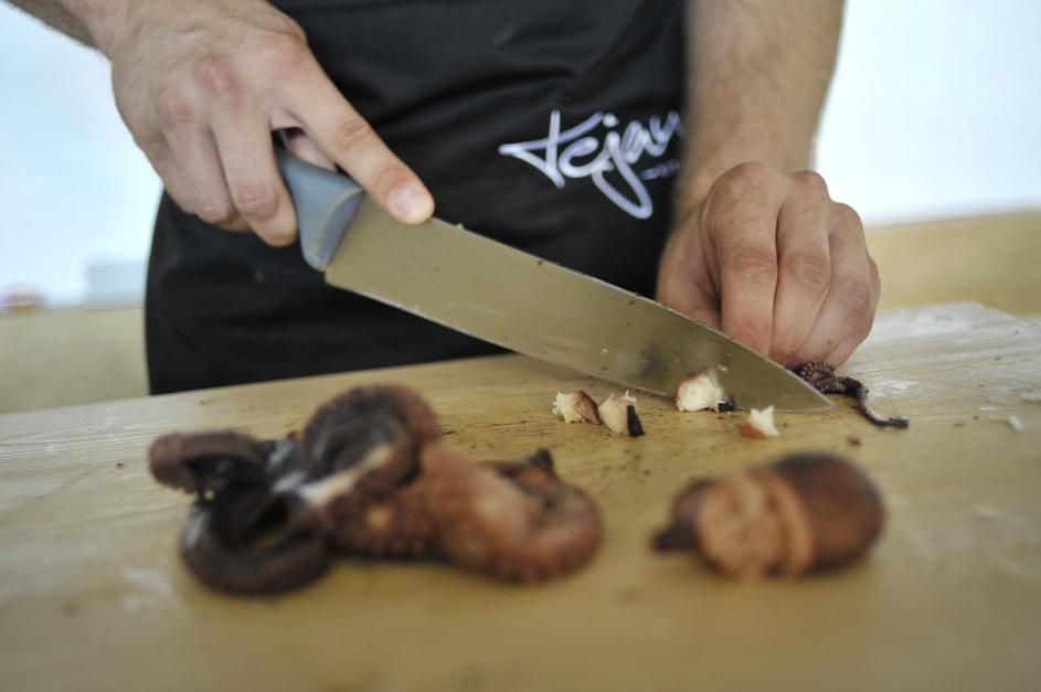 "Kuhani hobotnici le odstranite zob, kože ne lupite, saj ima ta največ okusa," razlaga Jani.