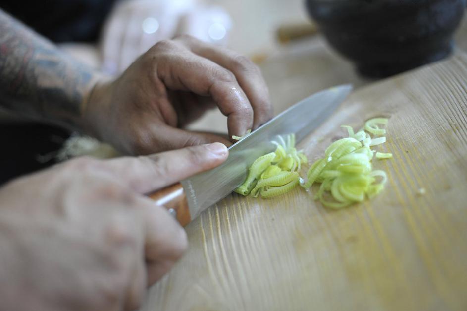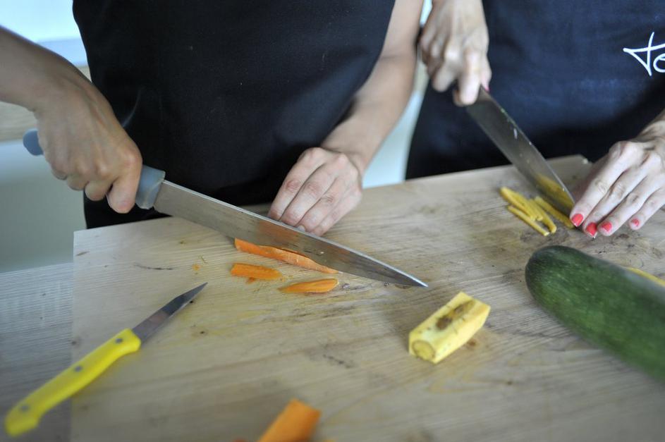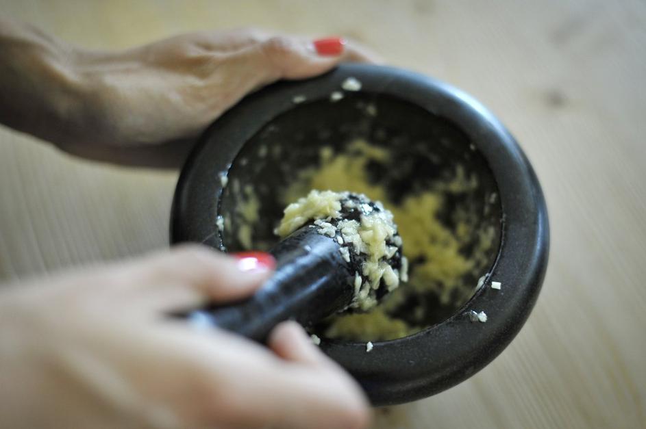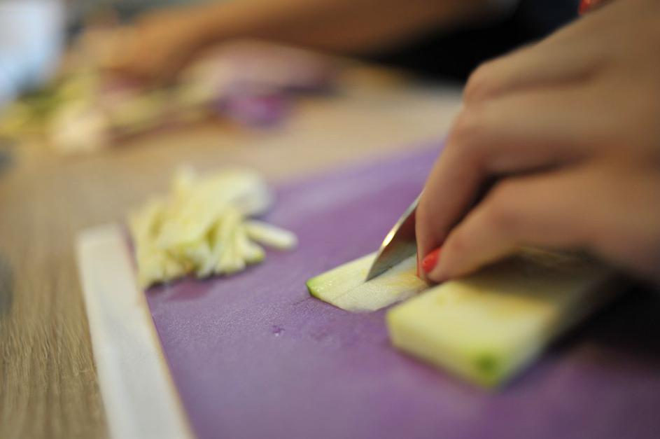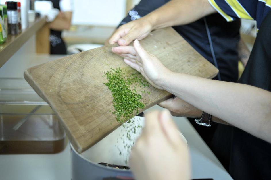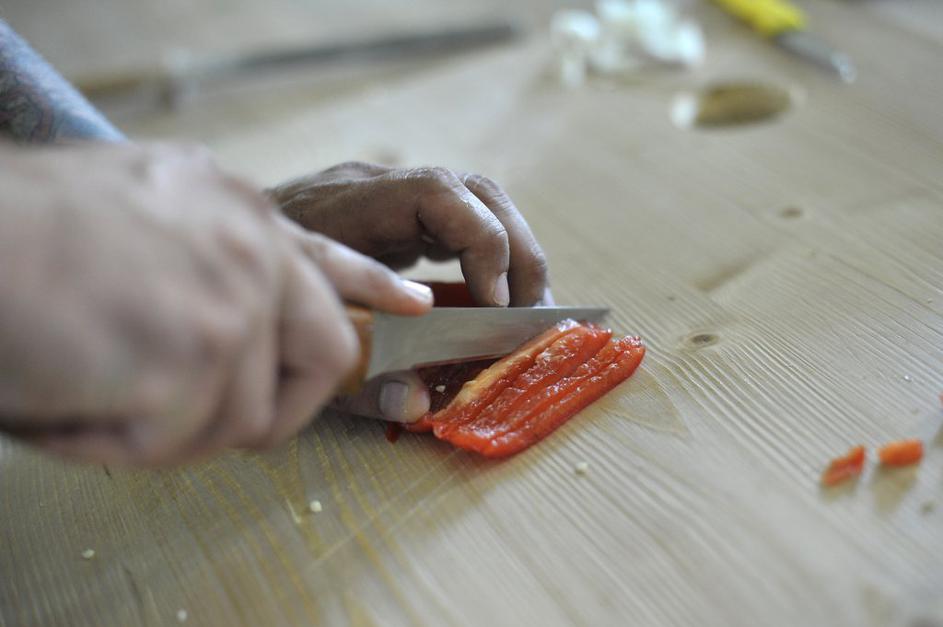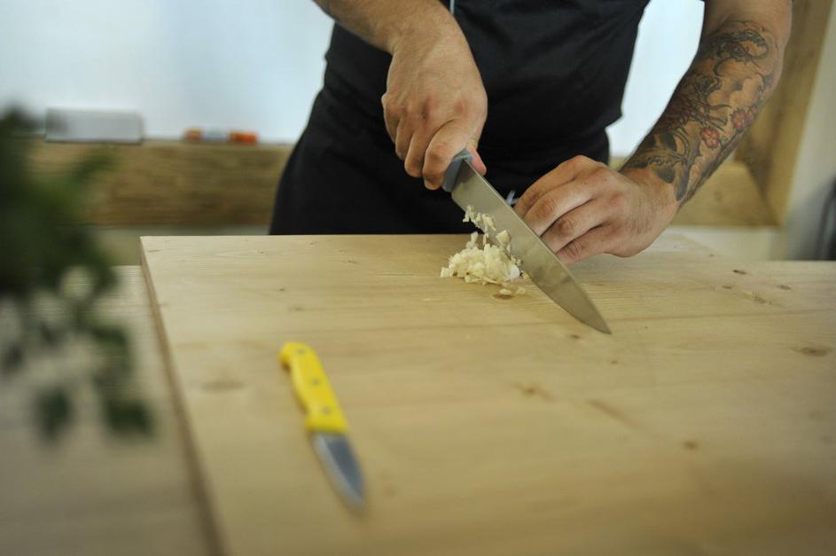 Najprej je bilo na vrsti rezanje čebule in česna.