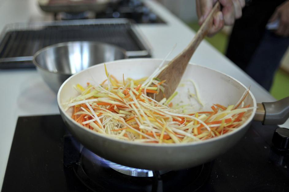 Zelenjavo, narezano na trakove, le zelo na hitro popecite in postrezite kot prilogo.