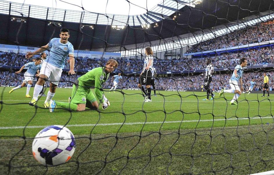 (Manchester City - Newcastle United) Drugega Sergio Agüero (desno).