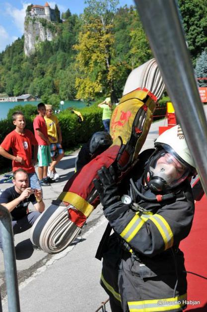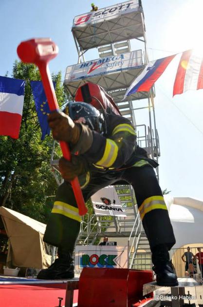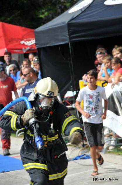 Firefighter Combat Challenge 2013Gasilci morajo na progi premagati podobne ovire, kakor pri svojem delu, na intervencijah. Branko Habjan