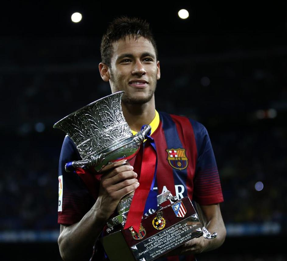 Neymar naslov prvaka pokal trofeja zmaga Barcelona Atletico Madrid superpokal(Barcelona – Atlético Madrid) Neymar je prvič po prihodu v Katalonijo začel tekmo ob Lionelu Messiju, a bil skupaj z Argentincem večino časa nemočen. Vseeno se je skupaj s trenerjem Gerardom Martinom veselil svoje prve trofeje pri Blaugrani. Reuters