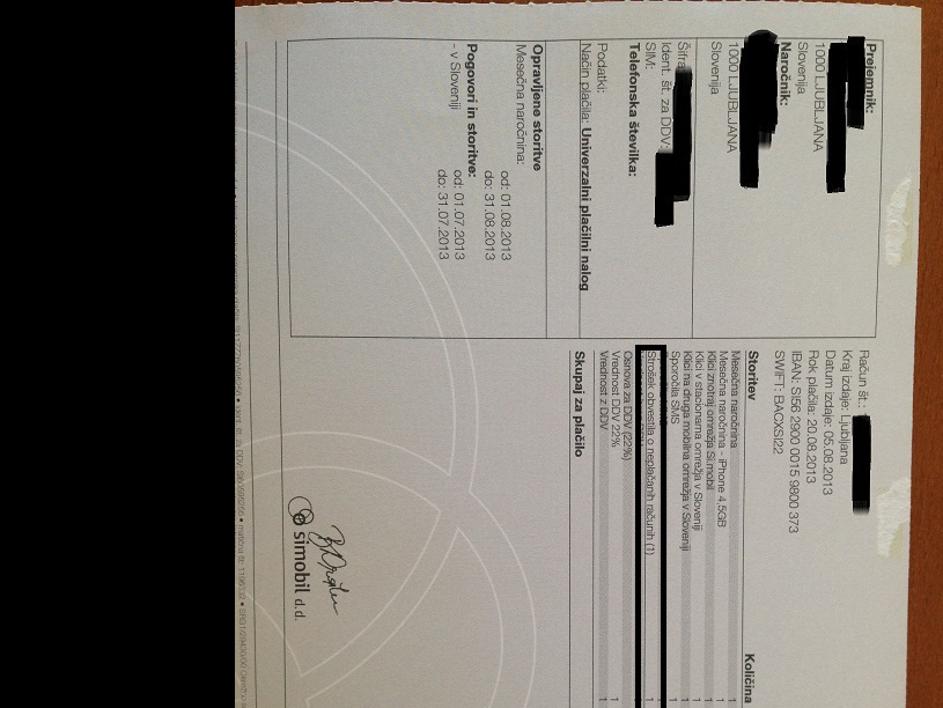 Račun Simobil Bralec nam je poslal kopijo svojega računa, iz katerega je razvidno, da so mu zaračunali stroške neplačanih obveznosti. Bralec
