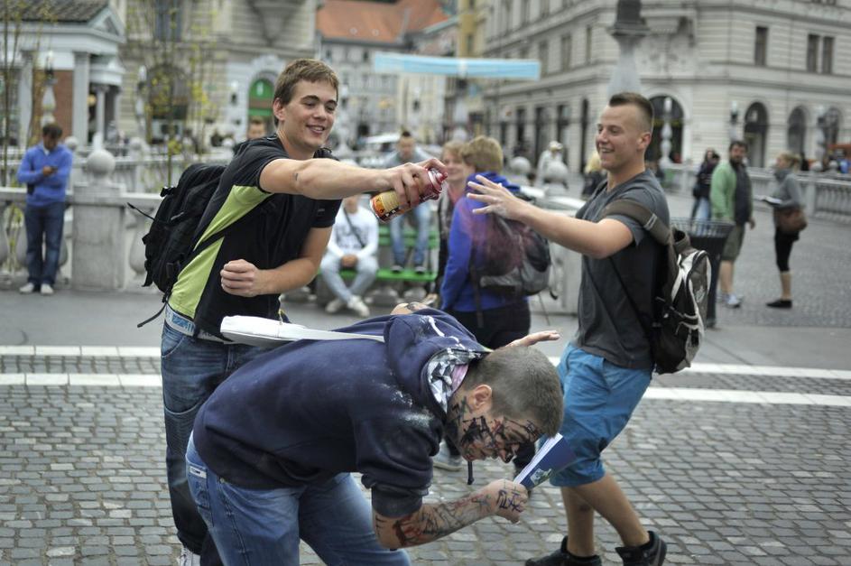 Po Ljubljani metali moko in jajca