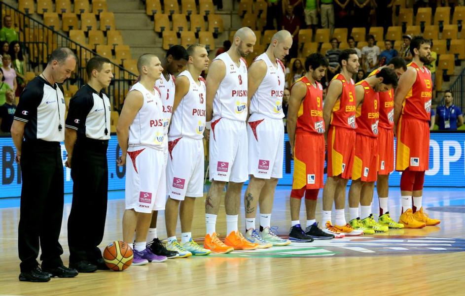 (Poljska – Španija) Vse tekme, tudi tista med Španijo in Poljsko, so se začele z minuto molka v čast umrlim v prometni nesreči na Madžarskem.