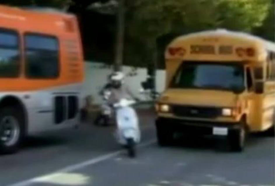 Gwyneth Paltrow vespa avtobus nesrečaGwyneth Paltrow pa sicer ne spada med osovražene zvezdnice, temveč voznice. S hčerko na Vespi je nesramno izsilila šolski avtobus, ki je moral nenadno zavirati. Gwyn, raje se drži osebnega šoferja. Youtube