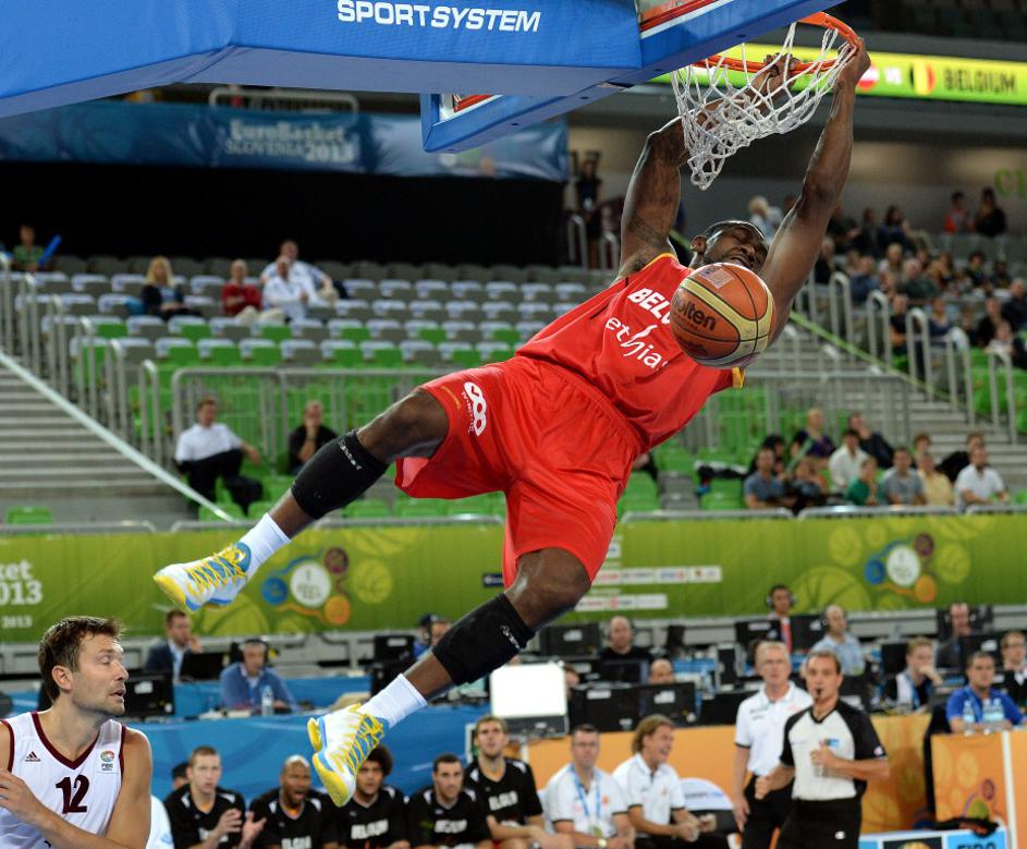 Belgija Latvija EuroBasket Stožice Ljubljana Mukubu zabijanje
