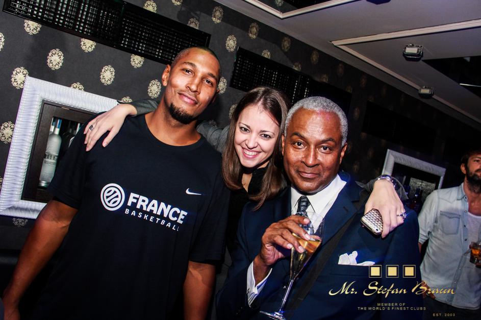 Francoski reprezentant Boris Diaw, Ivana Ćosić, PR-menedžer kluba Stefan Braun in Tony Parker starejši