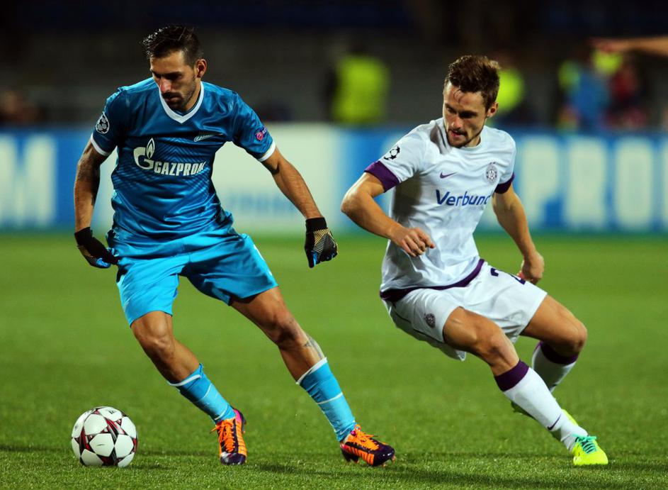 Zenit in Austria sta se v St. Peterburgu razšla brez zadetkov. Na sliki Hulk in Marin Leovac (Zenit - Austria Dunaj).