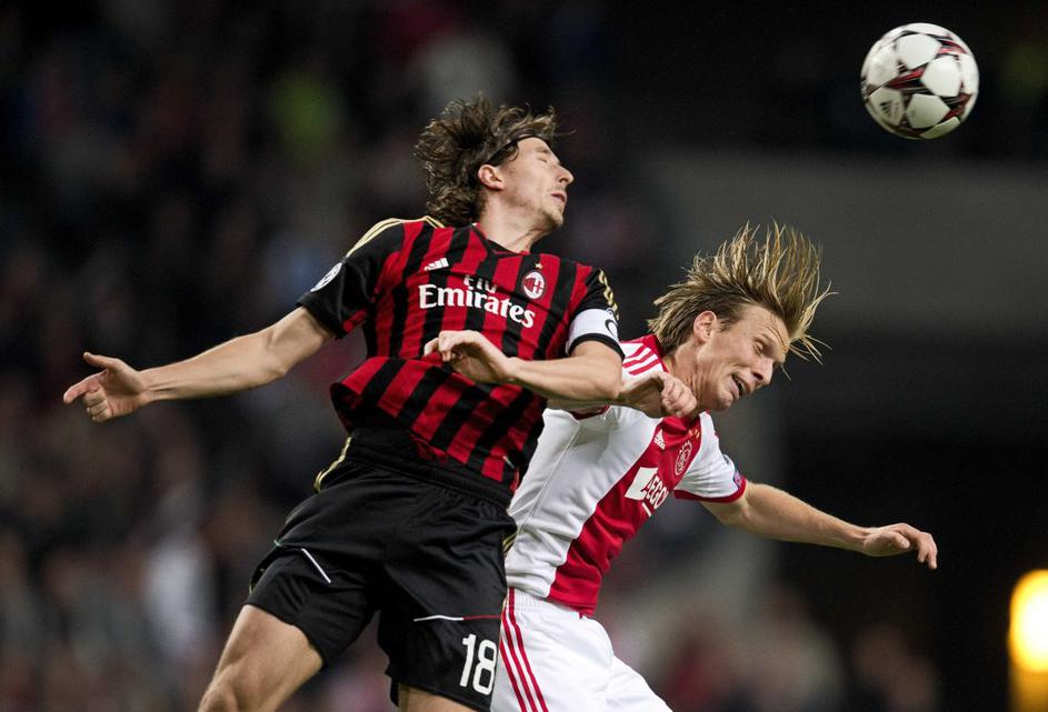 V zadnji minuti rednega dela je za Ajax z glavo zabil Stefano Denswil (Ajax - AC Milan).