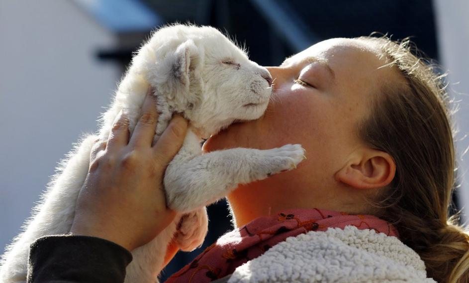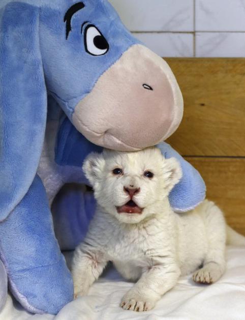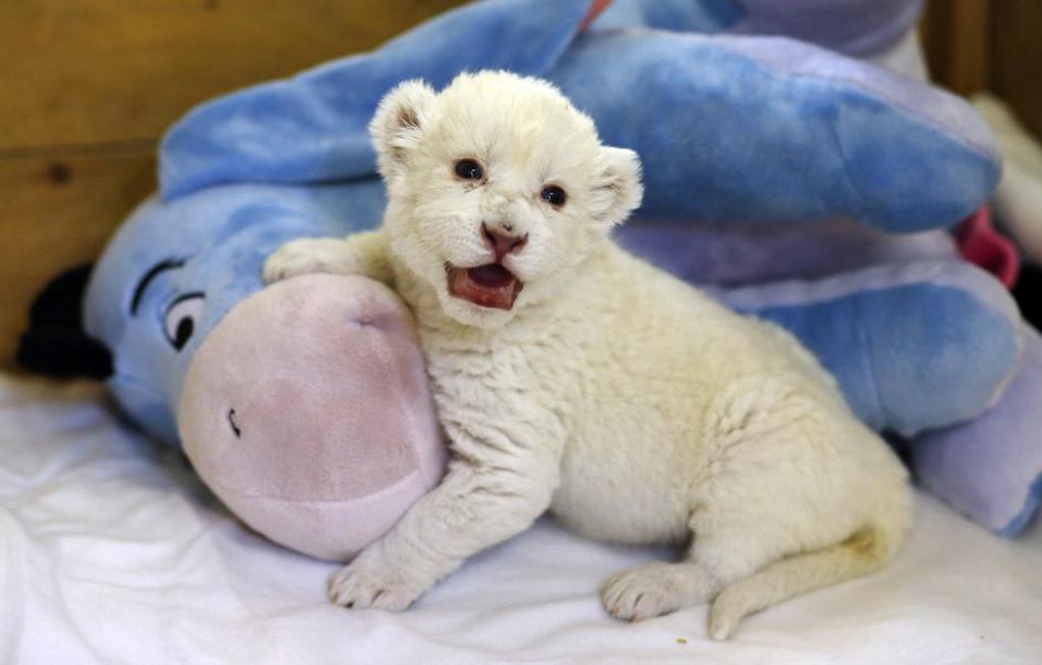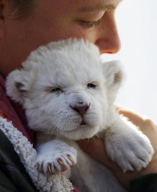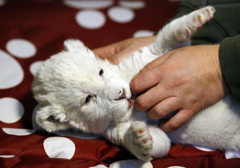 Beli lev Bela levinja, ki še nima imena, se je skotila konec septembra. Imela je še bratca, ki pa je poginil. Reuters Beli lev