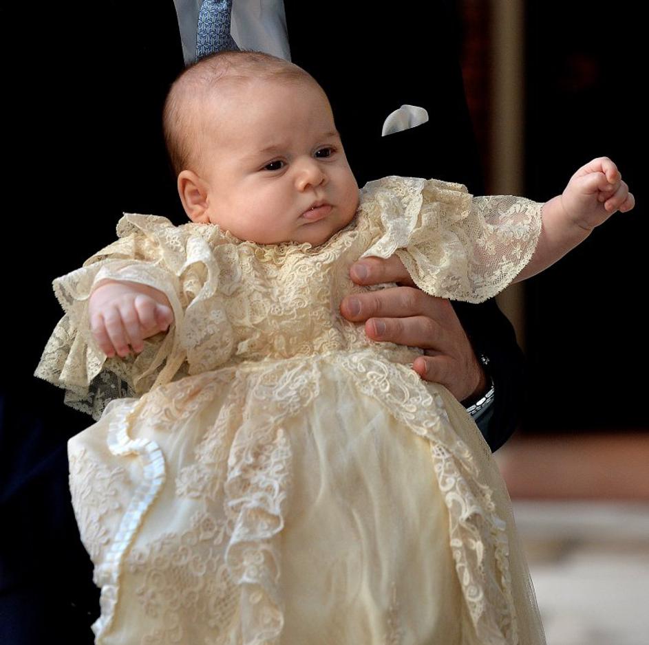 Krst princ George Kate WilliamMali princ George je pogumno in brez kričanja prestal krst ter tako dokazal, da je tudi v obleki pravi dedec! EPA