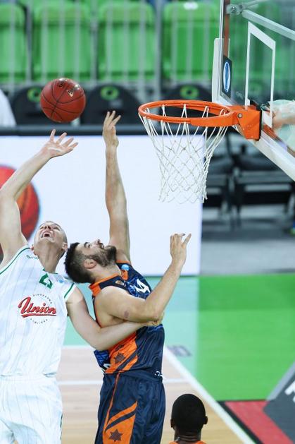 (Union Olimpija - Valencia) Union Olimpija je v zadnji četrtini skoraj zapravila ogromno prednost, nato pa vendarle tekmo zbrano pripeljala do konca.