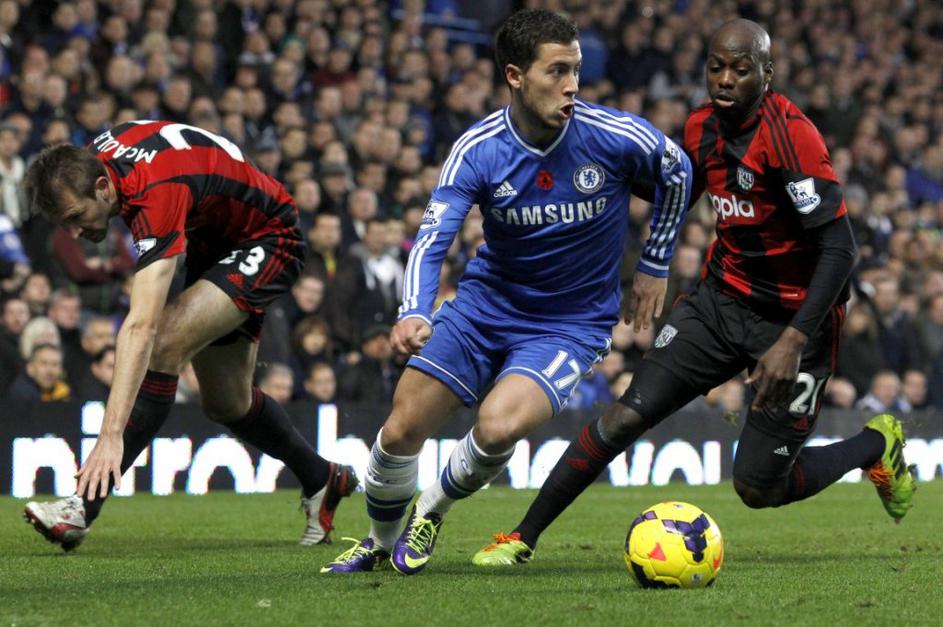 Hazard Mulumbu McAuley Chelsea West Bromwich Albion WBA Premier League