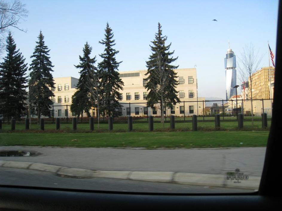 SarajevoAmeriško veleposlaništvo v Sarajevu je eno od najbolj varovanih zgradb v BiH. Zavarovano je z visoko kamnito ograjo, okoli katere je veliko postojank, iz katerih objekt varujejo policisti, pripadniki Sipe. Anja Zupanc