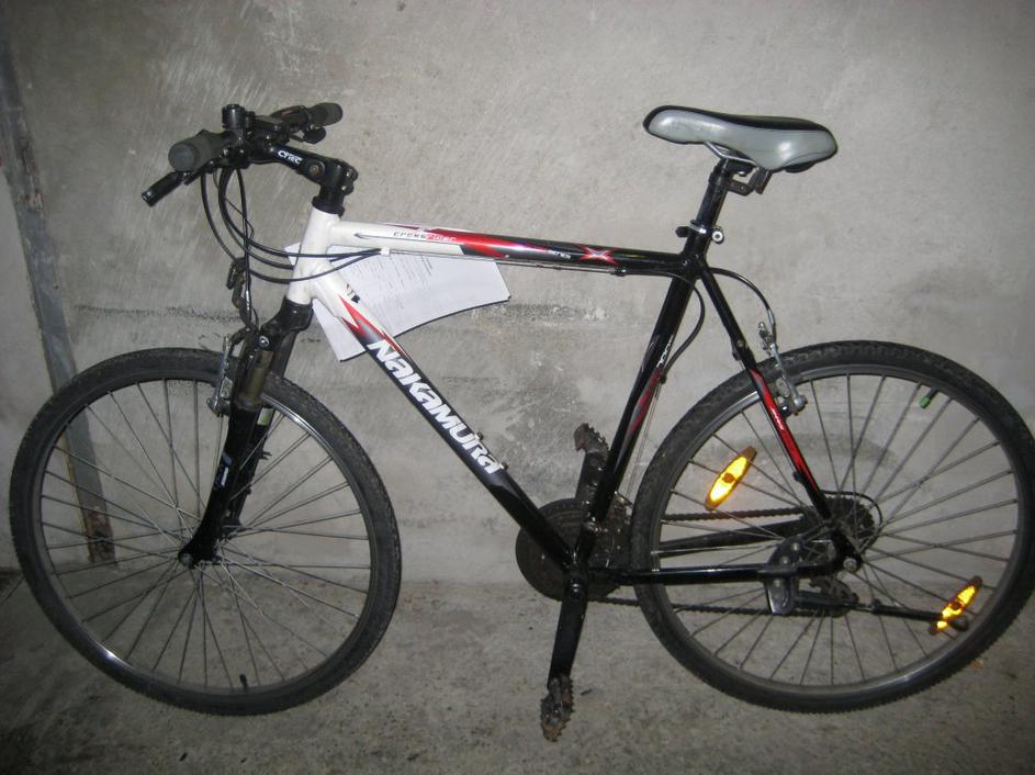 Ukradeno kolo Moško turno kolo, znamke Nakamura, model crossrider, z oznako okvirja SA7111671, črne, bele in rdeče barve PP Maribor I Ukradeno kolo