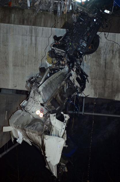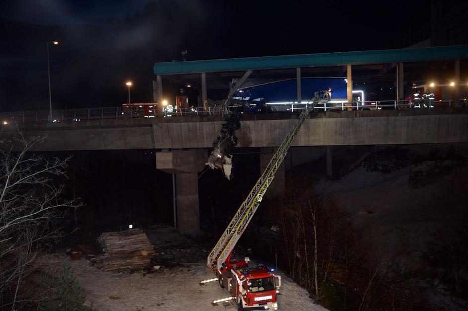 Pol tovornjaka viselo čez most