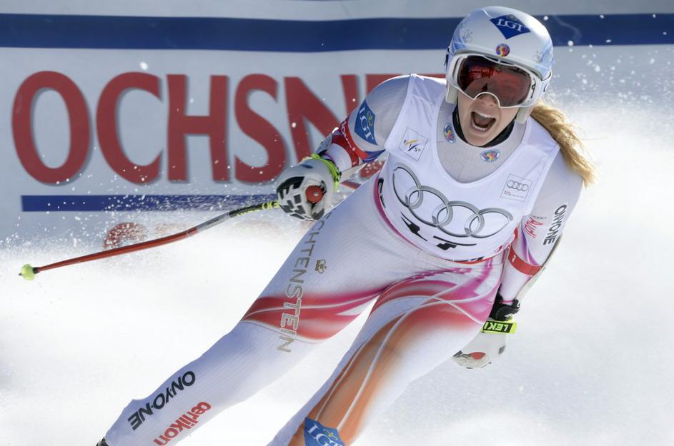 Kajsa Kling (levo), Tina Weirather (sredina) in Anna Fenninger.