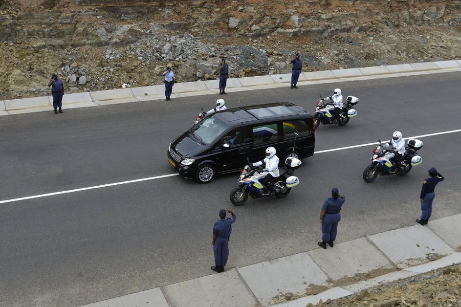 Pogrebna procesija tik pred Mandelinim domačim krajem Qunu.