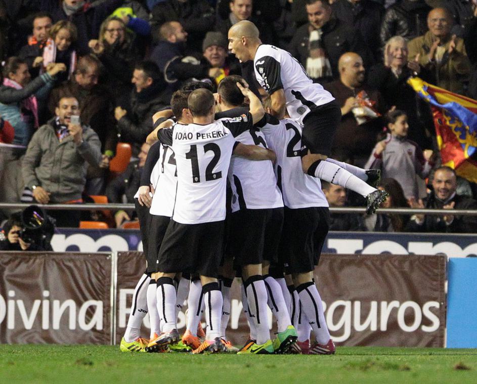 (Valencia – Real Madrid) Slavje na Mestalli: Jérémy Mathieu se pripravlja za izenačujoči gol proti Realu.
