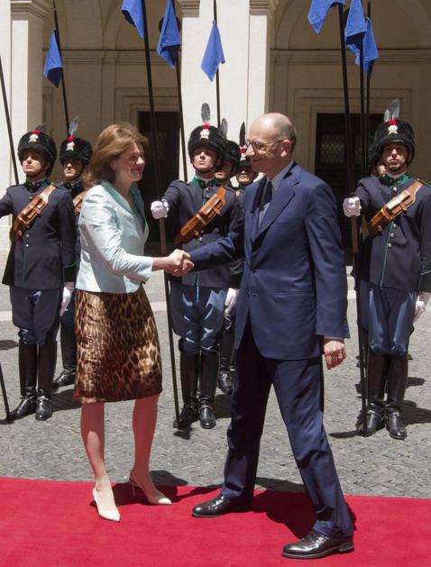 Alenka med obiskom Merklove julija, ko ji je prekratka obleka delala preglavice pri izstopanju iz avtomobila.