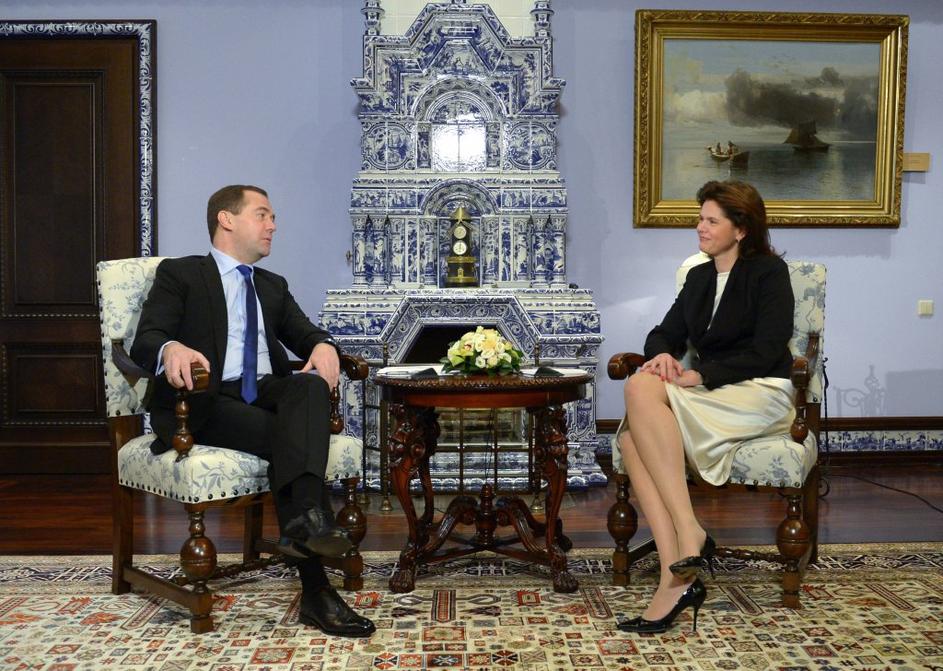 Alenka in njeno pomečkano krilo ob obisku Dmitrija Medvedjeva.