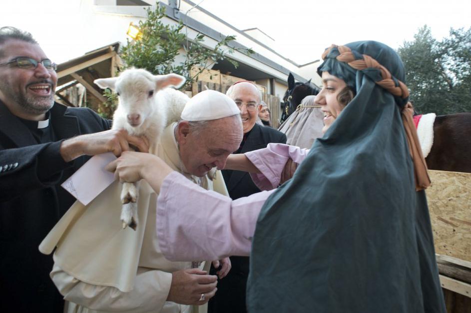 Papež Frančišek z jagenjčkom