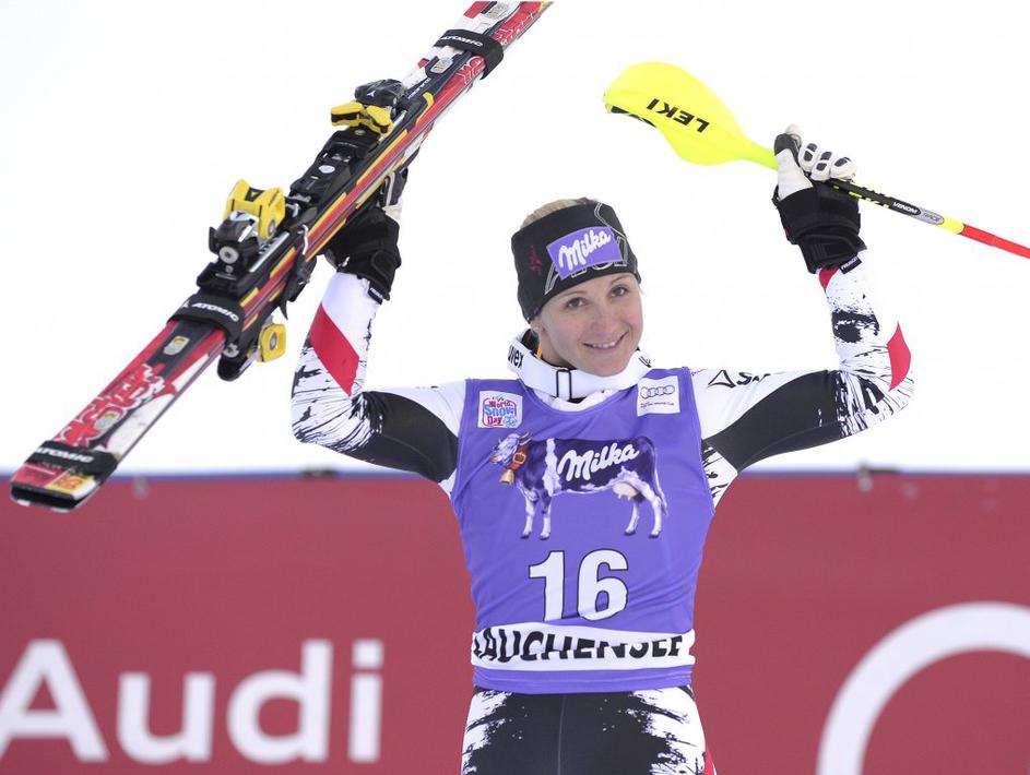 Tudi Michaela Kirchgasser je napadla iz ozadja in pristala na drugem mestu.
