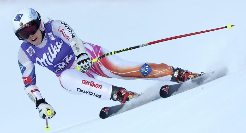 Tina Weirather je s številko 32 prismučala na drugo mesto po prvi vožnji ...
