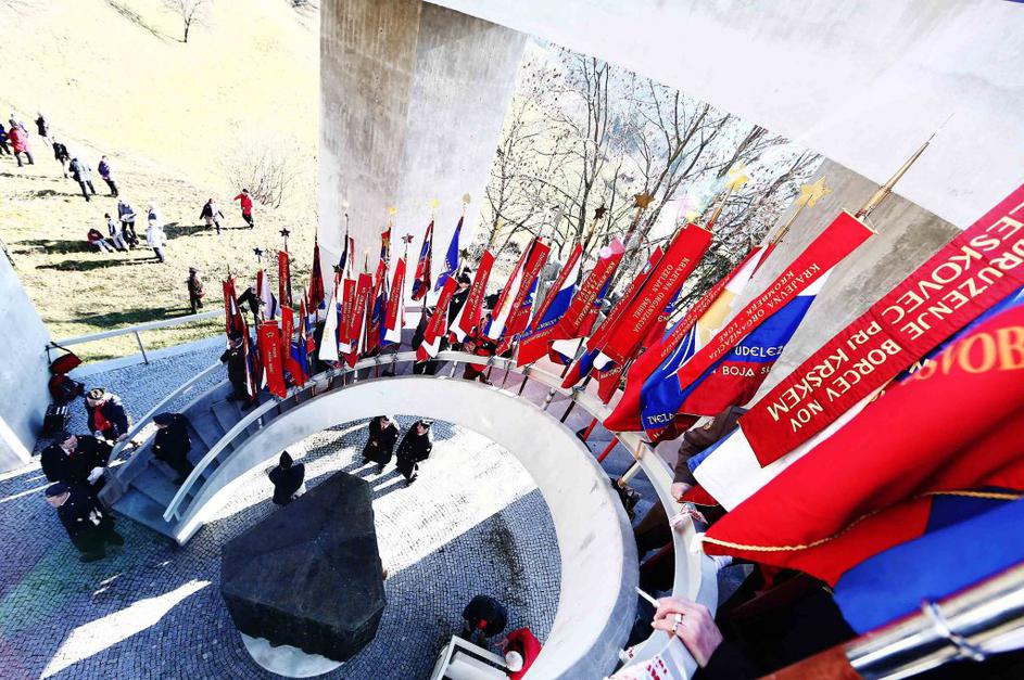 Spomenik v spomin na dražgoško bitko je zasnoval ing. arh. Boris Kobe, postavlili pa so ga julija 1976. V spodnjem delu spomenika je prostor s spominsko ploščo in z reliefi okrašeno bronasto kostnico s posmrtnimi ostanki dražgoških žrtev.