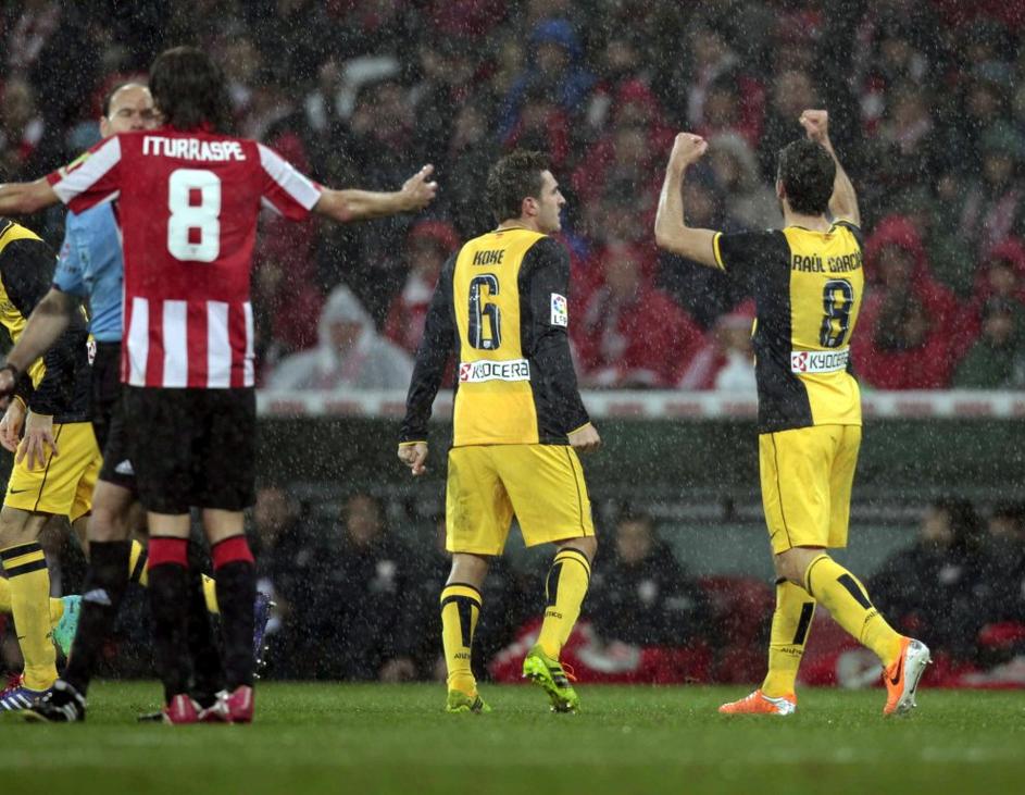(Athletic Bilabo - Atlético Madrid) Raul Garcia in Koke se veselita izenačujočega zadetka v 55. minuti.