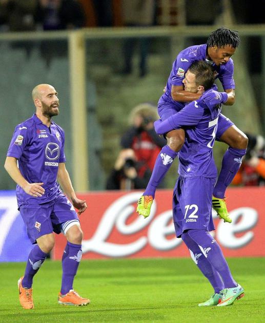 (Fiorentina – Atalanta) Iličić, ki je vse dosedanje gole zabil na domačem stadionu Artemio Franchi, je takole prejemal čestitke Kolumbijca Juana Cuadrada in Španca Borje Valera.