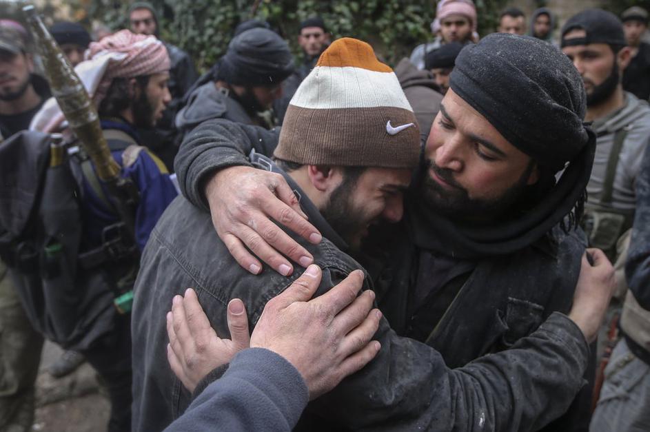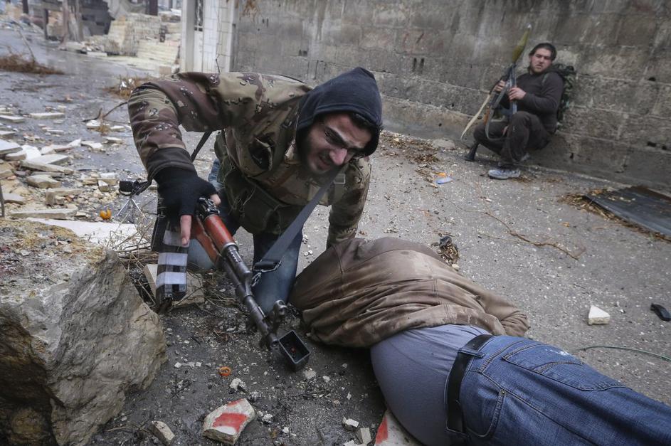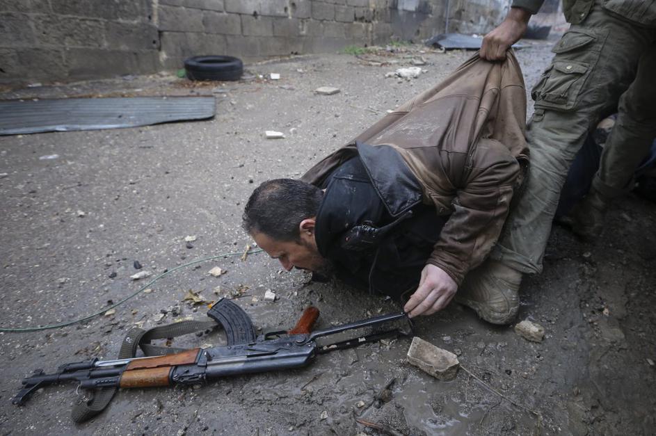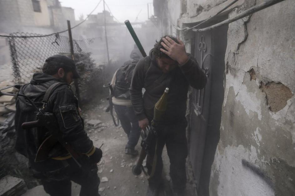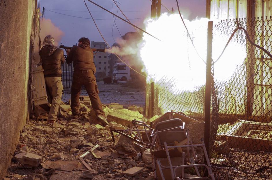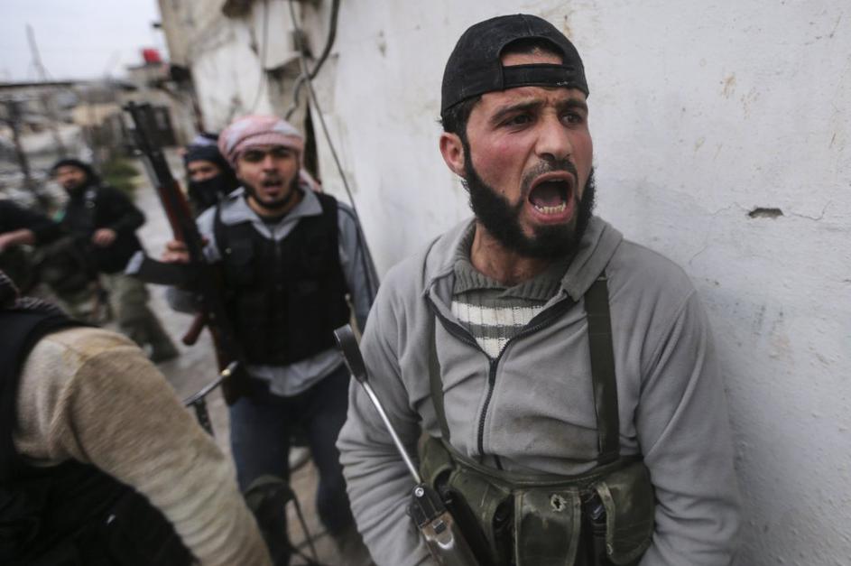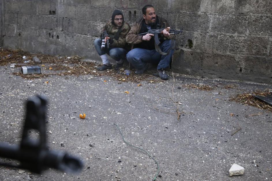 Sirska upornika pred napadom na režimsko kontrolno točko.