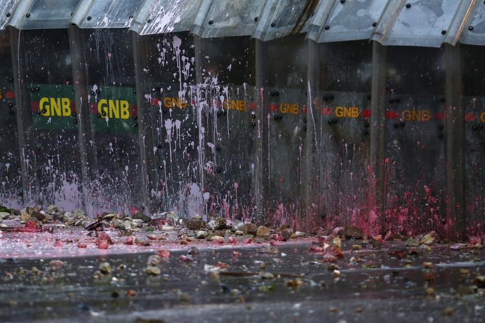 Protestniki v Caracasu so na napade policije odgovorili s kamni, barvo in vsem drugim, kar jim je prišlo pod roke.
