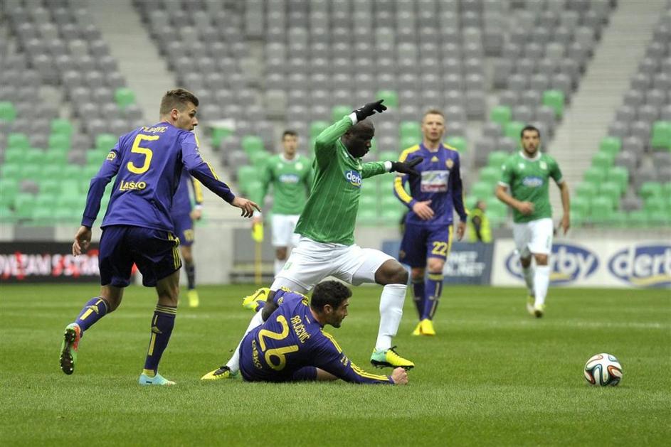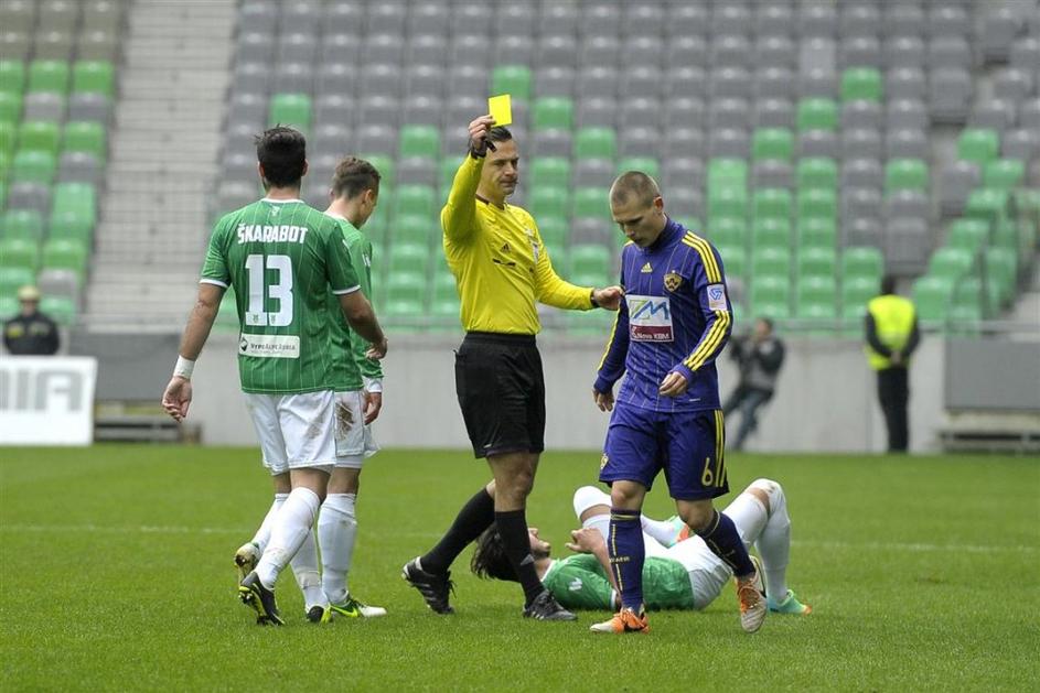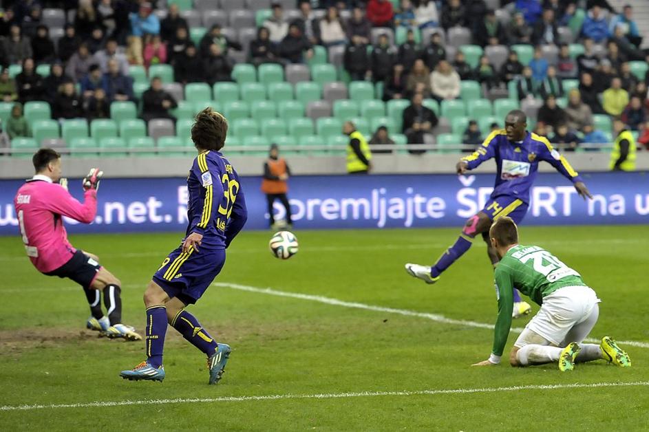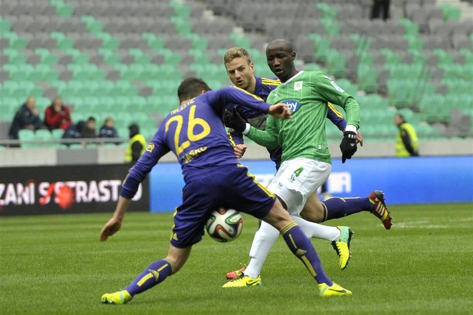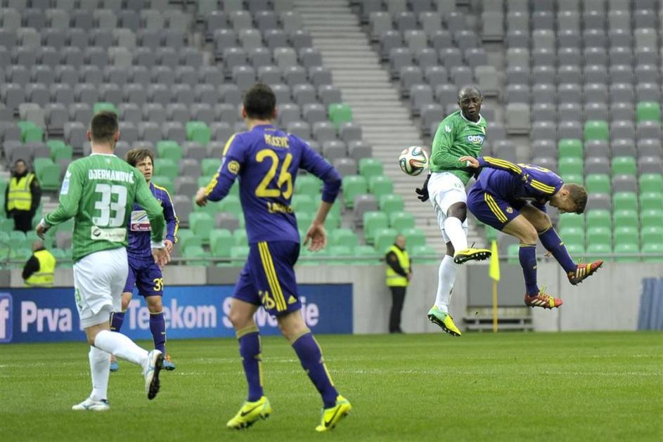 Olimpija Maribor Prva liga TS Stožice večni derbi(Olimpija Ljubljana – Maribor) Green Dragons so gol Francoza "pozdravili" z rasističnim vzklikanjem, zato je glavni sodnik Damir Skomina prekinil tekmo. Anže Petkovšek