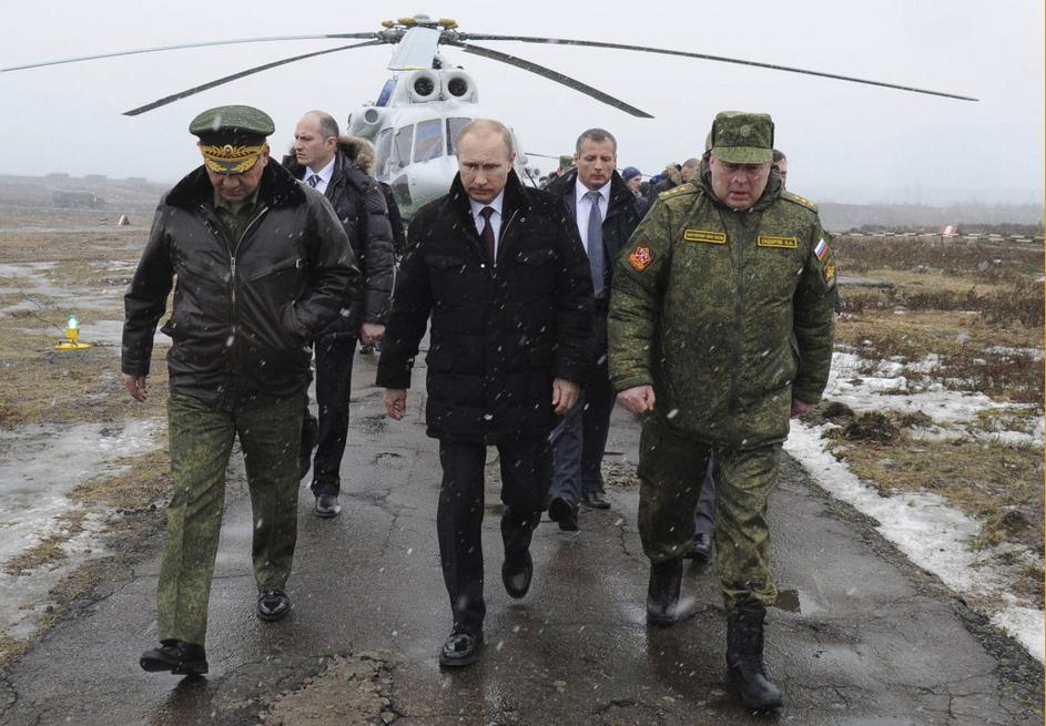 Ruski predsednik Vladimir Putin z obrambnim ministrom Sergejem Šojgujem na vojaških vajah