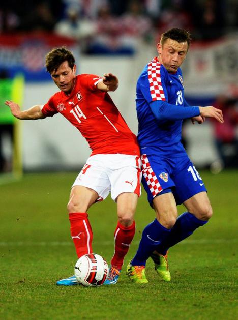 Drmić Švica Hrvaška prijateljska tekma(Švica – Hrvaška) Josip Drmić, švicarski reprezentant hrvaških korenin, je "svojim" v St. Gallnu zabil kar dva gola. Z enako mero je za končnih 2:2 odgovoril Ivica Olić. EPA