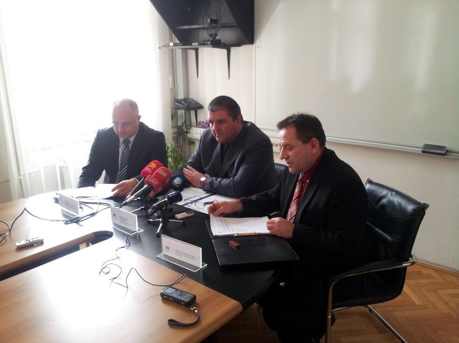 Predstavniki policije na tiskovni konferenci, na kateri so predstavili rezultate preiskave.