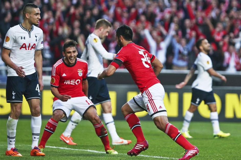 Garay Eduardo Silva Benfica Tottenham Evropska liga osmina finala (Benfica – Tottenham Hotspur) Po golu Ezequiela Garaya bi moral Tottenham Janu Oblaku zabiti tri gole za podaljšek. EPA Garay Eduardo Silva Benfica Tottenham Evropska liga osmina finala