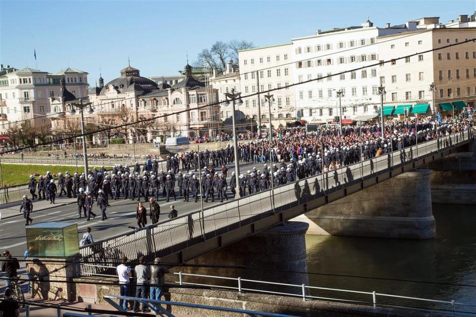 Salzburg Basel Evropska liga osmina finala (Red Bull Salzburg – Basel) Marš navijačev Basla skozi središče Salzburga ob močnem policijskem spremstvu. EPA Salzburg Basel Evropska liga osmina finala