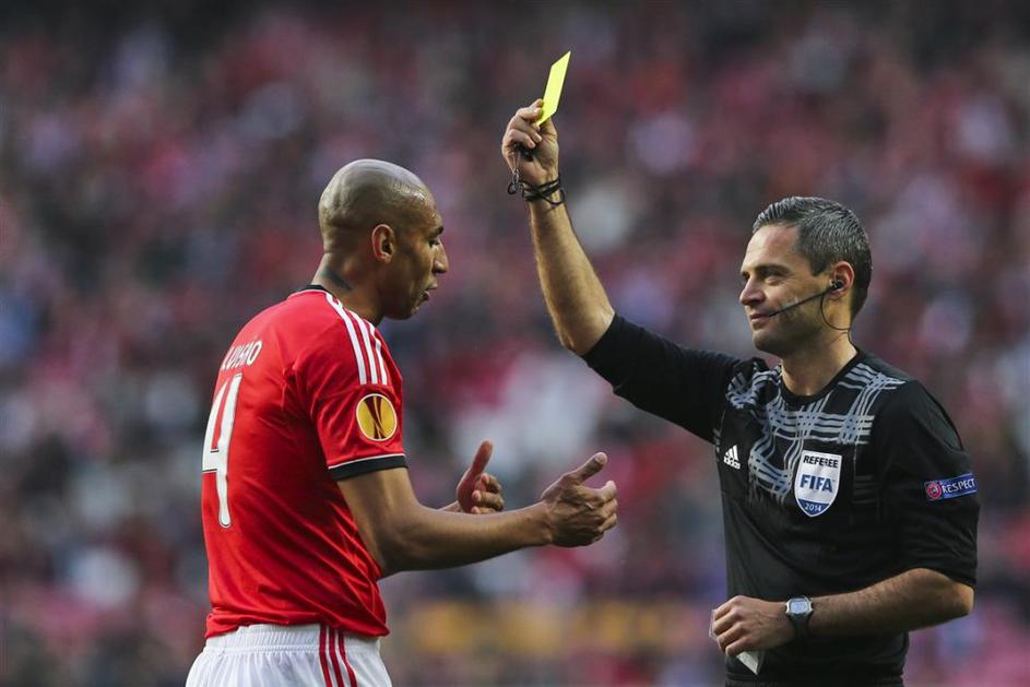 Skomina Luisao Benfica Tottenham Evropska liga osmina finala (Benfica – Tottenham Hotspur) Damir Skomina je v prvem polčasu pokazal edini rumeni karton, ki ga je dobil domači branilec Luisão. EPA Skomina Luisao Benfica Tottenham Evropska liga osmina finala