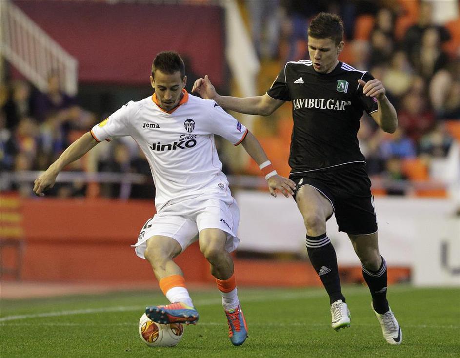 Pereira Bezjak Valencia Ludogorec Evropska liga osmina finala (Valencia – Ludogorec) Roman Bezjak (desno) na Mestalli ni bil blizu presenečenja in se od tekmovanja poslovil kot drugi strelec. Reuters Pereira Bezjak Valencia Ludogorec Evropska liga osmina finala