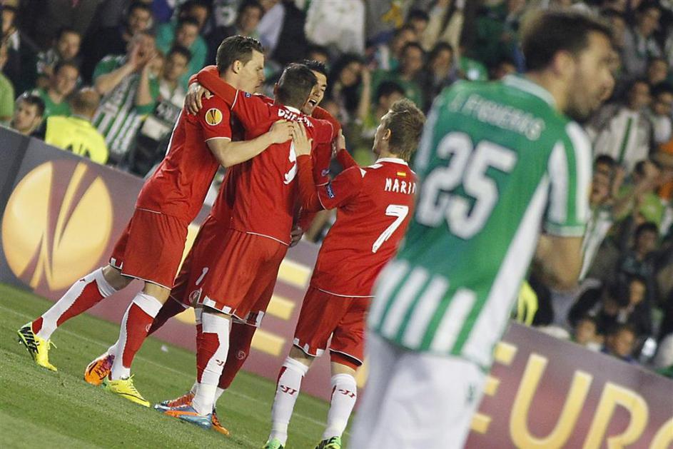 Rakitić Vitolo Betis Sevilla Evropska liga osmina finala Marin Gameiro Koke More (Real Betis – Sevilla) Slavje se je po zapravljenem petem strelu Nona lahko začelo. Reuters Rakitić Vitolo Betis Sevilla Evropska liga osmina finala Marin Gameiro Koke More