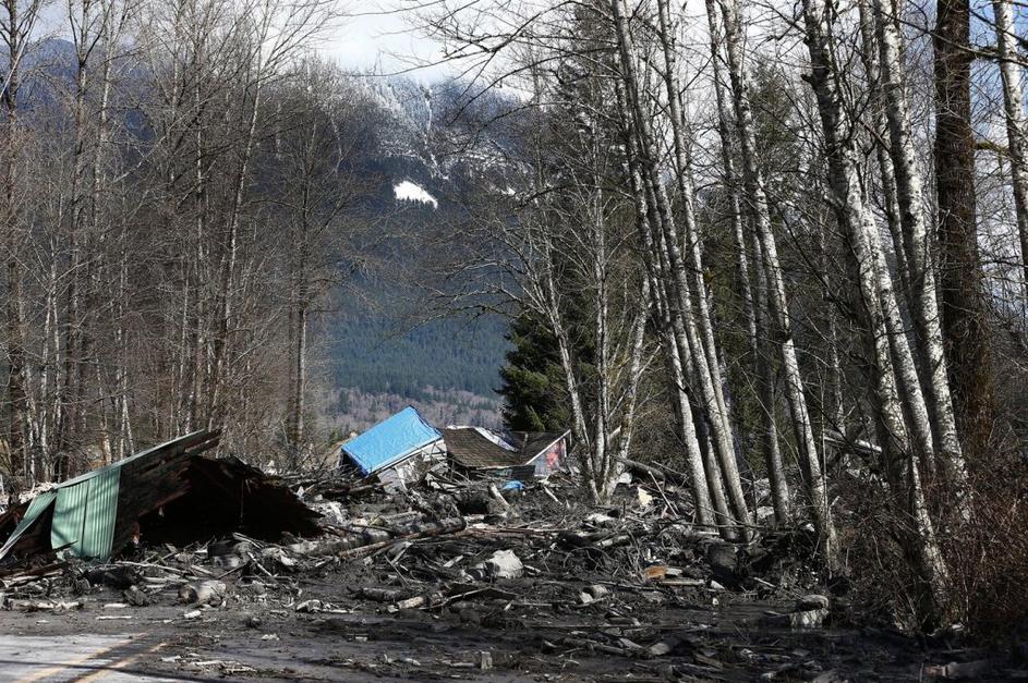 Med materialom, ki se je utrgal z gore, so pomešana tudi vozila, ki jih je gmota odnesla s seboj.
