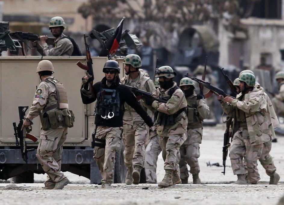 Afganistanska policija je po eksploziji zavarovala zgradbo ...