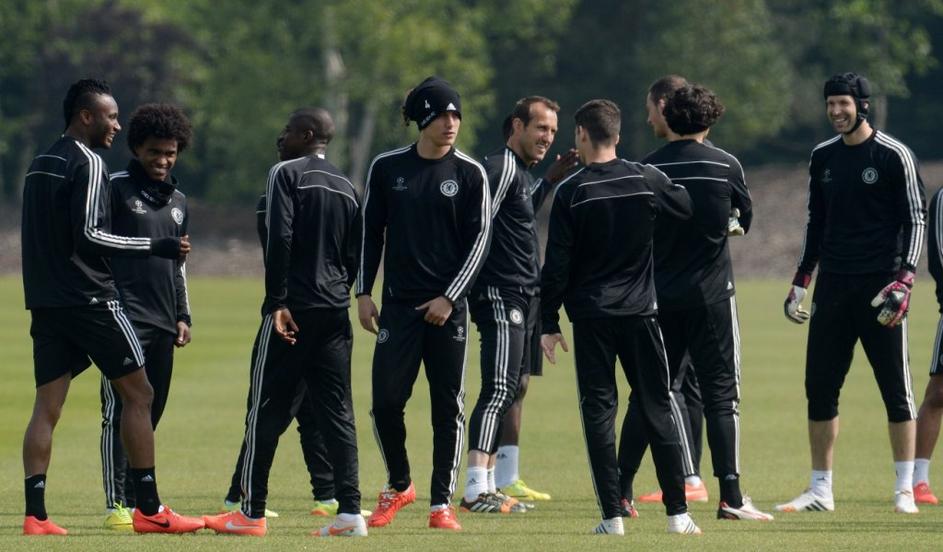 (Atlético Madrid – Chelsea) Dvoboj dveh pričesk na treningu modrih. John Obi Mikel (levo) proti Davidu Luizu.