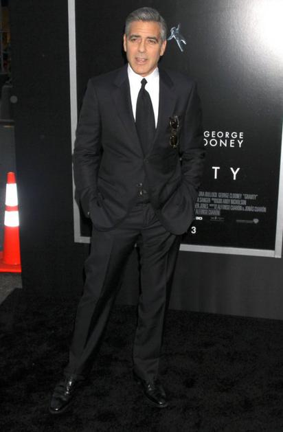 George ClooneyZa videz, ki ni tako formalen, je poskrbel lani na premieri filma Gravitacija v New Yorku. Črna obleka z ujemajočo se kravato bi bila tudi dobra izbira. FameFlynet
